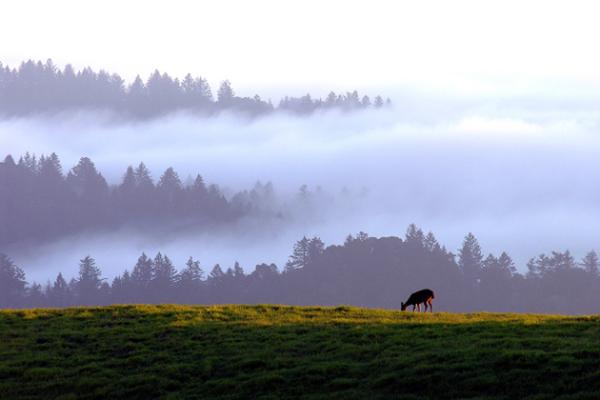 Grazing Deer at sunset, Monte Bello Preserve, San Francisco Peninsula.