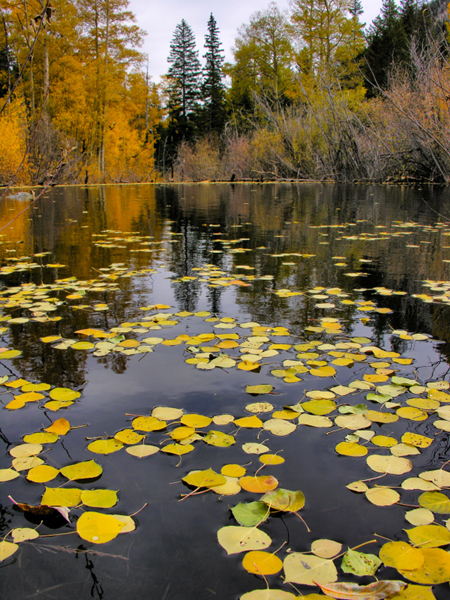 Aspen leaves and beaver pond,