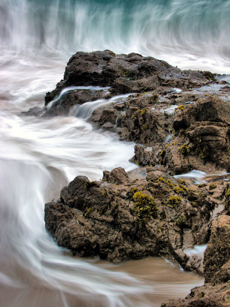 A slow exposure of an incoming wave captures the sometimes subtle