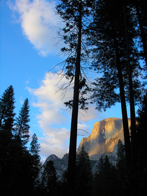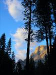 Half Dome sunset through trees, Yosemite NP