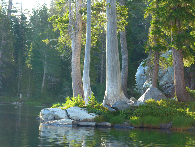 Standing trees, Velma Lake at dawn, Desolation Wilderness